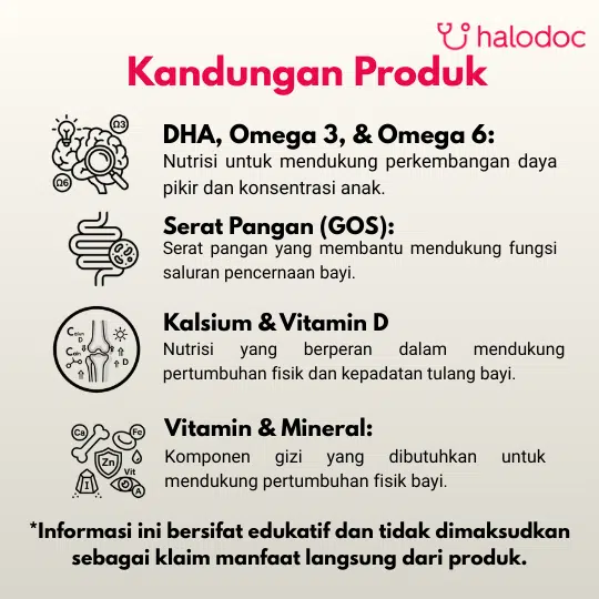 Asam linoleat, nukleotida, zat besi, protein, kalsium, taurin, vitamin a, vitamin e, vitamin c, kolin