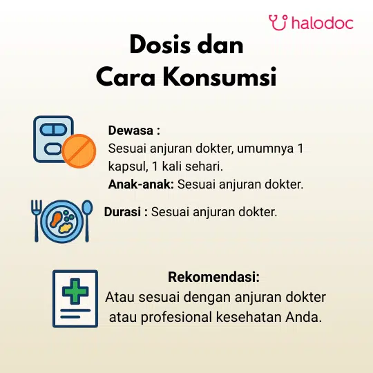 Dosis umum untuk dewasa adalah 1 kapsul per hari.