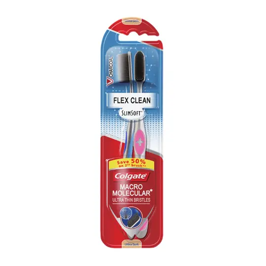 Colgate Toothbrush Flex Clean Slim Soft Charcoal 2 Pieces