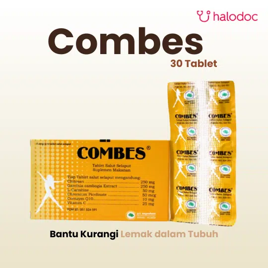 Combes merupakan tablet dengan kombinasi chitosan, ekstrak garsinia cambogia, L-carnitine, chromium picolinat, coenzime Q10 dan vitamin C yang dapat membantu mengurangi lemak tubuh.