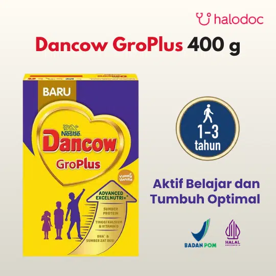 Susu ini diperkaya dengan DHA, Omega 3, dan Omega 6 yang esensial untuk perkembangan otak. Kandungan nutrisi lainnya meliputi zat besi untuk mencegah anemia, kalsium dan vitamin D untuk pembentukan tulang dan gigi yang kuat, serta serat pangan untuk menjaga kesehatan pencernaan. Selain itu, Dancow Groplus juga diperkaya dengan berbagai vitamin dan mineral penting lainnya. Dengan formula yang lengkap ini, Dancow Groplus membantu mendukung pertumbuhan tinggi, berat badan, serta daya tahan tubuh anak secara keseluruhan.