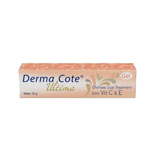 Derma Cote Ultima Gel merupakan gel transparan, tidak lengket, tida berbau, cepat mengering. Digunakan untuk memudarkan berbagai macam bekas luka (bekas luka operasi, bekas luka jatuh, bekas luka terkena benda panas, bekas jerawat). Dapat digunakan di seluruh bagian tubuh termasuk wajah, serta dapat digunaka untuk semua usia (di atas 2 tahun).