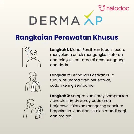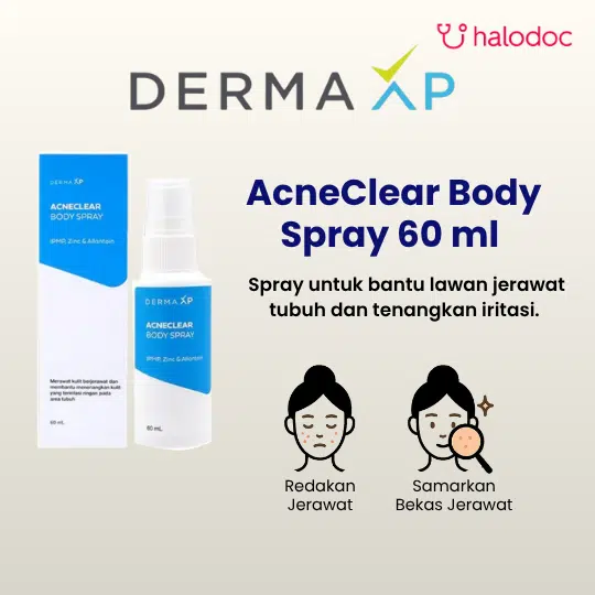 DermaXP Acne Clear Body Spray membantu merawat jerawat punggung. Diperkaya komponen Salicylic Acid yang membantu