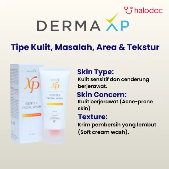 DERMA XP GENTLE FACIAL WASH 60 G merupakan produk pembersih wajah sehari-hari pada kulit berjerawat yang cenderung kering dan/atau sensitif untuk membantu mengurangi produksi minyak berlebih pada wajah tanpa menyebabkan kulit menjadi kering.