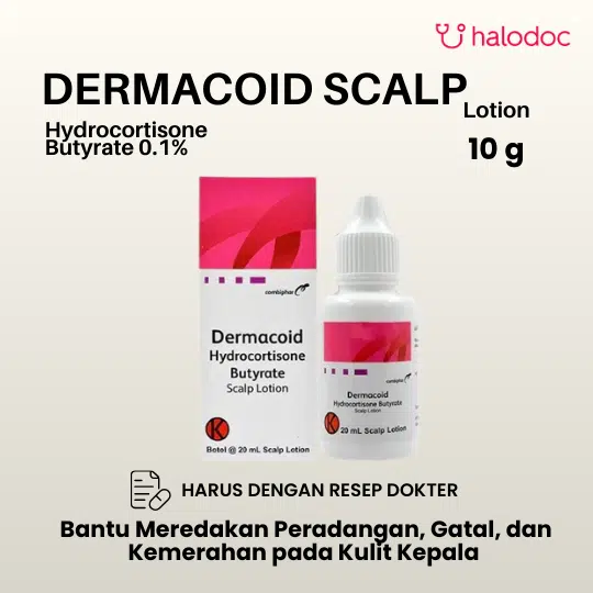DERMACOID SCALP LOTION 20 ML adalah sediaan kortikosteroid oles dalam bentuk losion yang dirancang khusus untuk kulit kepala. Informasi Umum Terkait Kandungan: Losion ini mengandung Hidrokortison yang bekerja untuk meredakan peradangan, gatal, dan kemerahan. Bentuknya yang cair mudah meresap dan tidak lengket di rambut. Dalam penggunaan obat ini harus SESUAI DENGAN PETUNJUK DOKTER.