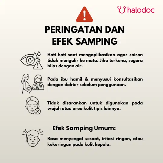 Aplikasikan pada kulit kepala yang bersih dan kering. Pijat lembut. Hindari kontak dengan mata.