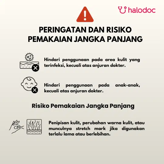 Hindari pemakaian jangka panjang pada kulit tipis atau pada bayi & anak.