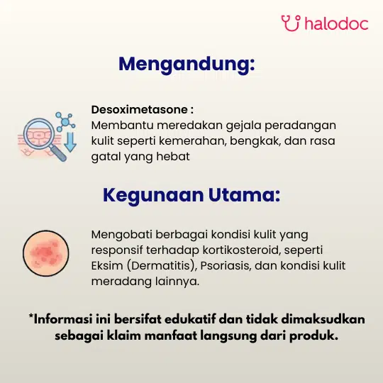 Obat ini bekerja dengan menekan reaksi peradangan di kulit sehingga membantu mengurangi gejala iritasi.