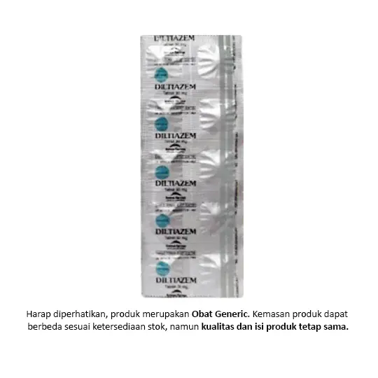DILTIAZEM 30 MG 10 TABLET digunakan untuk hipertensi, dapat digunakan tunggal atau kombinasi dengan obat anti hipertensi lain dan sebagai obat angina pektoris. Dalam penggunaan obat ini HARUS SESUAI DENGAN PETUNJUK DOKTER. Pembelian obat ini memerlukan edukasi terkait penggunaan atau pengonsumsian obat yang tepat dan aman yang akan dikenakan biaya.