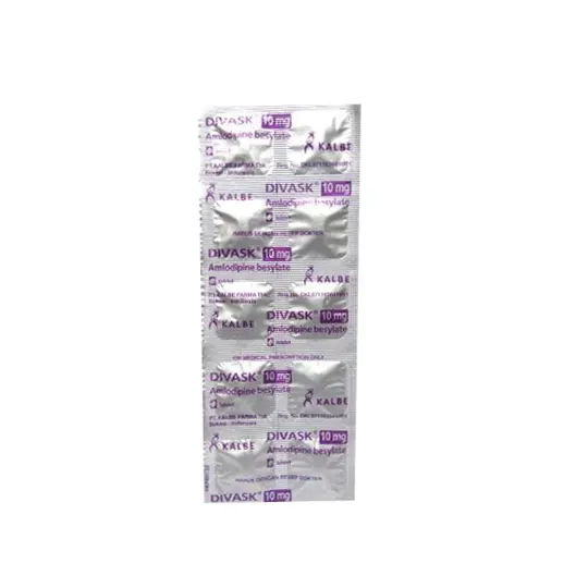 DIVASK merupakan obat yang mendung amlodipin. Amlodipin merupakan obat antihipertensi Calcium Channel Blockers (CCB). Obat ini digunakan sebagai pengobatan lini pertama hipertensi dan dapat digunakan sebagai agen tunggal untuk mengontrol tekanan darah pada sebagian besar pasien. Pasien yang tidak cukup terkontrol dengan obat antihipertensi tunggal (selain amlodipin) dapat memperoleh manfaat dari penambahan amlodipin, yang telah digunakan dalam kombinasi dengan diuretik thiazide, blocker, adrenoceptor blocking agent, atau ACE inhibitor. Pengobatan lini pertama iskemia miokard baik karena obstruksi tetap (angina stabil) dan atau vasospasme/vasokonstriksi (angina Prinzmetal atau varian) atau pembuluh darah koroner. Dapat digunakan jika presentasi klinis menunjukkan kemungkinan vasospastik/vasokonstriksi belum dikonfirmasi. Sebagai monoterapi atau kombinasi dengan obat antiangina lain pada pasien dengan angina yang refrakter terhadap nitrat dan atau penyekat dosis memadai. Dalam penggunaan obat ini harus SESUAI DENGAN PETUNJUK DOKTER. Pembelian obat ini memerlukan edukasi terkait penggunaan atau pengonsumsian obat yang tepat dan aman yang akan dikenakan biaya.