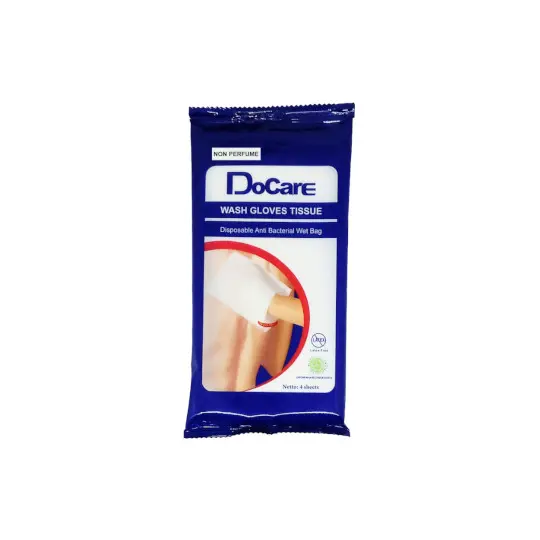 DoCare Wash Glove Adalah washlap sekali pakai (disposable), terbuat dari bahan non woven mengandung Air, sabun tanpa bilas, Antiseptik, pelembut dan pelembab. Kelebihan produk ini antara lain: