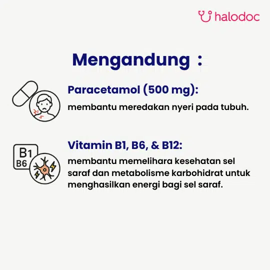 Obat ini digunakan untuk mengurangi rasa nyeri yang disebabkan Neuritis dan Neuralgia.