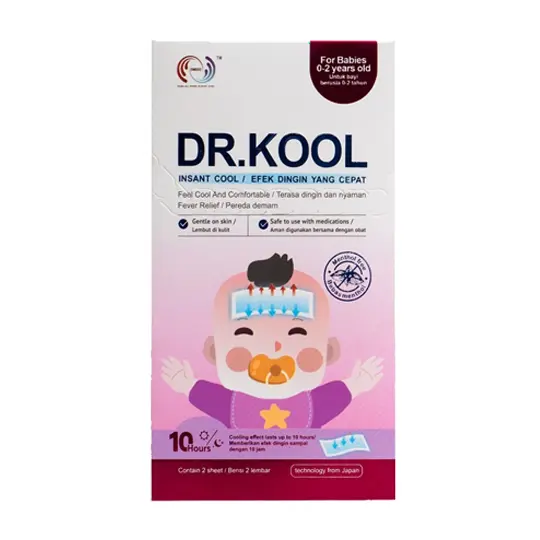 Dr. Kool Baby adalah plester kompres penurun panas dan pereda nyeri untuk bayi. Plester ini berisi gel khusus yang dapat menyerap panas dan meringankan demam dengan efek dingin hingga 10 jam.