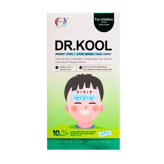 Dr. Kool Children adalah plester kompres penurun panas dan pereda nyeri untuk anak-anak. Memberikan efek dingin hingga 10 jam.