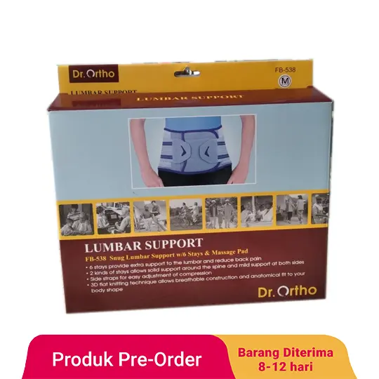 DR ORTHO LUMBAR SUPPORT W/6 STAYS SIZE M FB-538 merupakan alat kesehatan berupa lumbar support yg sangat ideal untuk menstabilkan tulang belakang lumbar, memperbaiki postur, membantu meredakan nyeri punggung yang cocok dan nyaman untuk kontur tubuh