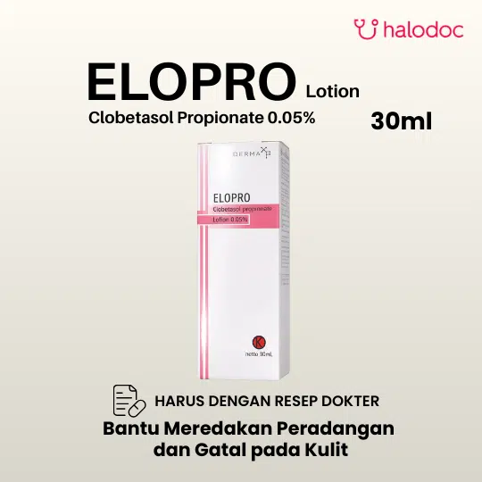 ELOPRO LOTION 30 ML adalah sediaan kortikosteroid topikal super-poten (Kelas I) dalam basis lotion. Obat ini tergolong Obat Keras (HARUS DENGAN RESEP DOKTER). Dalam pembelian produk ini, Anda akan diarahkan untuk melakukan sesi edukasi singkat dengan Dokter kami mengenai penggunaan yang tepat dan aman. Sesi ini akan dikenakan biaya layanan.
