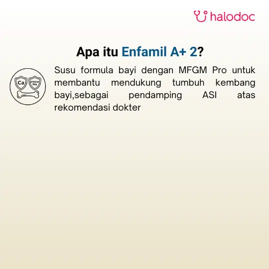 ENFAMIL A+ 2 merupakan susu formula lanjutan usia 6-12 bulan. Enfamil A+ dibuat sebagai makanan pendamping ASI. Mengandung banyak nutrisi penting seperti DHA, ARA dan Prebiotik GOS untuk optimalkan pertumbuhan dan perkembangan si kecil.