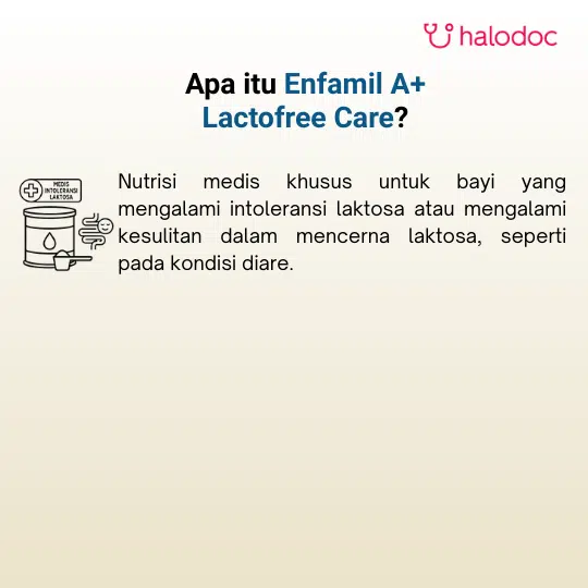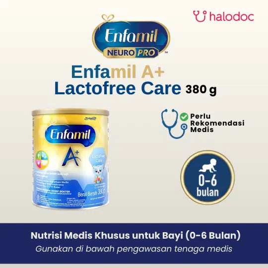 ENFAMIL A+ LACTOFREE CARE 380 G merupakan susu yang diformulasikan khusus untuk bayi berusia 0-12 bulan yang memiliki kandungan DHA, sejenis lemak Omega 3 dan sebuah elemen penting untuk otak. Susu ini diperuntukkan untuk bayi yang sensitif terhadap laktosa atau intoleransi laktosa
