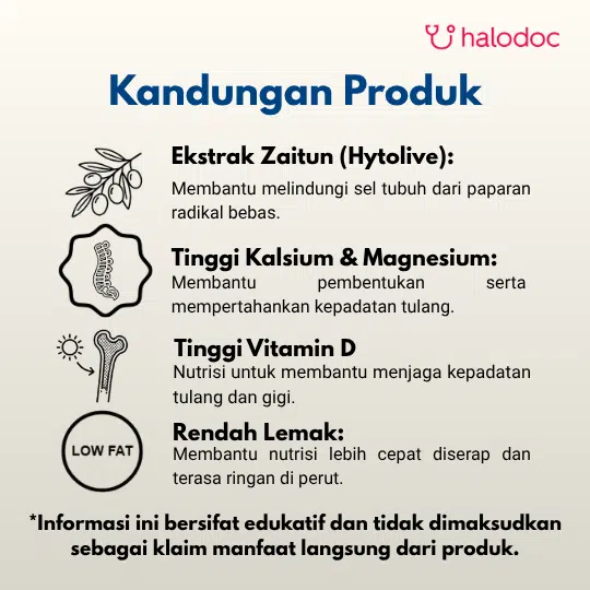 2 gelas/hari dan penuhi 100% AKG (Angka kecukupan gizi) dari Kalsium, Vitamin B1, B2, B6
