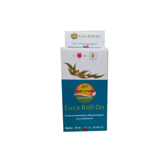 Euca Roll On adalah produk aromaterapi berbentuk roll-on yang dirancang untuk aplikasi topikal yang praktis. Produk ini mengandung minyak kayu putih (Eucalyptus globulus oil), sebuah komponen yang dikenal memiliki sifat ekspektoran dan dekongestan ringan. Aplikasi Euca Roll On berpotensi membantu meredakan sensasi tidak nyaman pada tenggorokan dan memberikan efek lega pada saluran pernapasan, khususnya saat mengalami hidung tersumbat atau gangguan pernapasan ringan lainnya. Selain itu, aroma khas eucalyptus yang dihirup dapat memberikan efek menyegarkan dan berkontribusi pada relaksasi melalui stimulasi olfaktori. Euca Roll On dapat dipertimbangkan sebagai pendamping untuk meredakan gejala-gejala ringan pada saluran pernapasan dan memberikan efek aromaterapi. Respons individual terhadap produk aromaterapi dapat bervariasi.