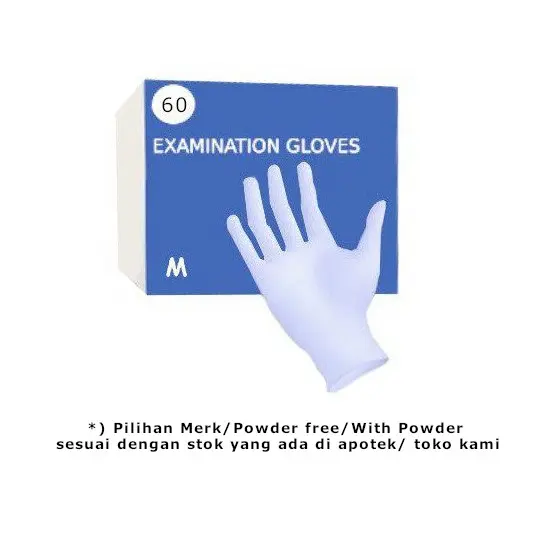 Sarung tangan ini merupakan sarung tangan sekali pakai (disposable), bersifat non steril dan pre-powdered (terdapat sedikit bubuk putih).