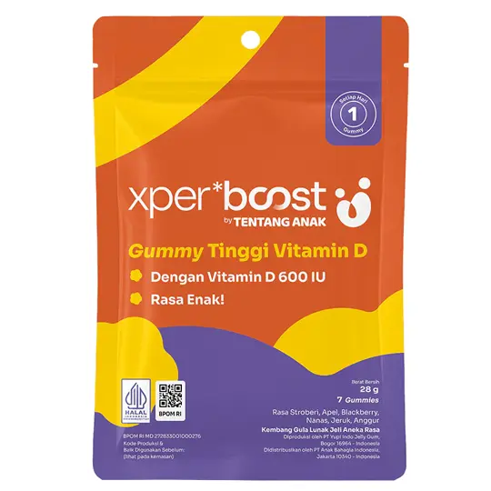 EXPERT BOOST GUMMY VITAMIN D 600 IU adalah suplemen kesehatan harian untuk anak dalam bentuk gummy kunyah dengan aneka rasa buah yang lezat. Produk ini merupakan solusi praktis untuk membantu melengkapi kebutuhan nutrisi Vitamin D yang penting untuk tumbuh kembang anak.