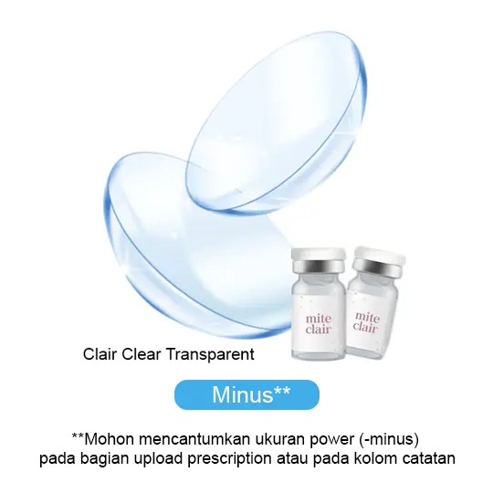 Mite Clair Clear Transparent Softlens Minus untuk penggunaan 6 bulan.