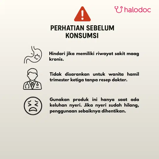HARUS DENGAN RESEP DOKTER. Hati-hati pada penderita riwayat tukak lambung, asma, gangguan ginjal, gagal jantung, atau lupus. Penggunaan harus sesuai petunjuk dokter.