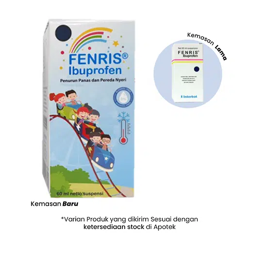 Fenris Sirup 60 ml adalah obat yang mengandung Ibuprofen 100 mg per 5 ml. Digunakan untuk menurunkan demam pada anak dan meringankan nyeri ringan hingga sedang. Sebagai obat golongan OAINS, obat ini bekerja dengan menghambat produksi prostaglandin, zat alami yang berperan dalam timbulnya peradangan dan nyeri. Dalam penggunaan obat ini harus SESUAI DENGAN PETUNJUK DOKTER.