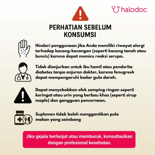 Tidak untuk digunakan pada wanita hamil (karena potensi efek stimulasi rahim dari Fenugreek). Hindari penggunaan jika memiliki riwayat alergi terhadap komponen herbal.