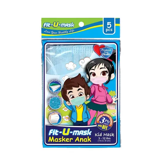 Fit-U Masker Anak merupakan masker untuk anak-anak dengan 3 lapisan dengan kualitas premium. Masker ini dilengkapi dengan melt blown filter untuk menyaring virus debu dan kotoran. Memiliki kawat hidung elastis yang mengikuti lekuk hidung dan wajah, karet spandex latex free yang nyaman digunakan
