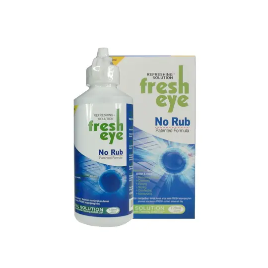 FRESH EYE NO RUB MULTI-PURPOSE SOLUTION merupakan cairan pembersih lensa kontak yang membasmi kuman tanpa harus menggosok lensa kontak dengan bahan HPMC yang memberikan kelembaban permukaan lensa kontak sepanjang hari.