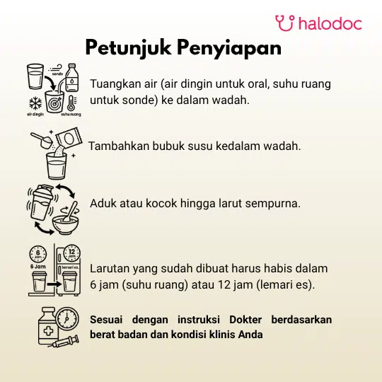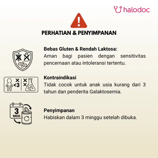Produk ini merupakan pangan olahan keperluan medis khusus untuk pasien malnutrisi. Penggunaan produk ini harus dengan rekomendasi dokter