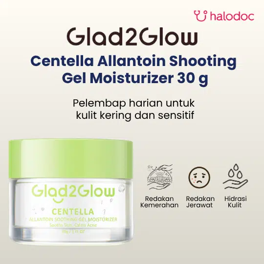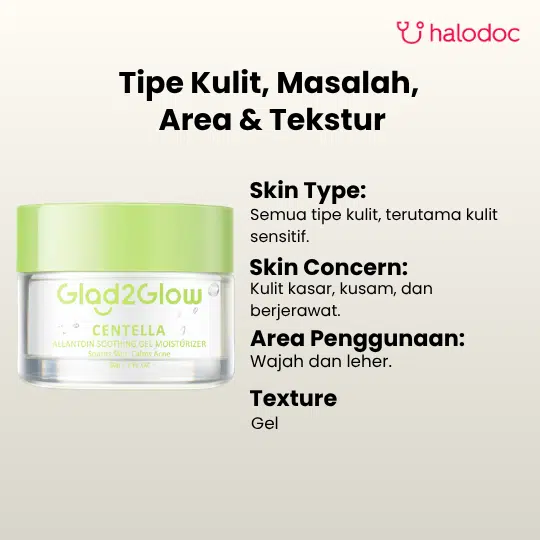 GLAD2GLOW CENTELLA ALLANTOIN SOOTHING GEL MOISTURIZER adalah pelembap wajah dengan tekstur gel ringan yang memberikan efek menenangkan secara instan. Produk ini dirancang sebagai solusi cepat untuk meredakan jerawat, kemerahan, dan iritasi pada kulit.