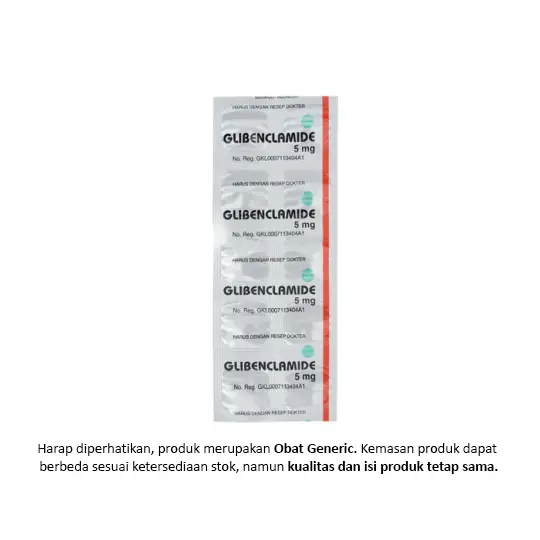 GLIBENCLAMIDE adalah obat anti diabetes tipe 2 yang termasuk golongan sulfonilurea. Glibenclamide atau Glyburide menurunkan kadar gula darah dengan cara meningkatkan kalsium intraseluler dalam sel beta pankreas sehingga menstimulasi produksi insulin. Glibenclamide da[at di gunakan sebagai terapi tunggal atau kombinasi dengan obat anti diabetes oral lainnya. Dalam penggunaan obat ini HARUS SESUAI DENGAN PETUNJUK DOKTER. Pembelian obat ini memerlukan edukasi terkait penggunaan atau pengonsumsian obat yang tepat dan aman yang akan dikenakan biaya.