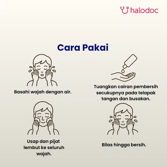 Basahi wajah Anda, lalu usapkan cleanser lembut ke seluruh wajah dan bilas hingga bersih.