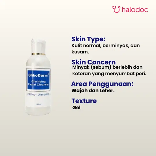 GLIKODERM CLARIFYING FACIAL CLEANSER 100 ML adalah pembersih wajah dengan formula yang ringan dan lembut. Cocok untuk kulit sensitif dan berjerawat. Mengandung Glycolic Acid (AHA) dan Salicylic Acid (BHA) yang membantu membersihkan kulit dan merawat kulit berjerawat.