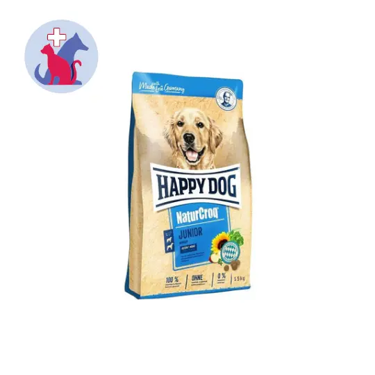 HAPPY DOG NATURCROQ JUNIOR merupakan makanan kering untuk anjing usia lebih dari 7 bulan. Kandungan energi dan protein yang disesuaikan dengan sempurna untuk pertumbuhan optimal anjing muda sejak usia 7 bulan. Komposisi protein hewani berkualitas tinggi yang seimbang dengan sereal gandum.