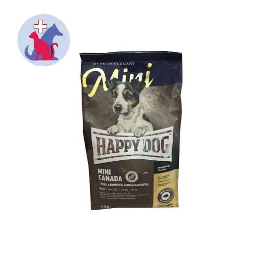 HAPPY DOG SUPREME MINI CANADA GRAINFREE merupakan makanan anjing tanpa biji-bijian yang menjadi pilihan makanan untuk anjing sensitif. Produk ini terbuat dari salmon, kelinci, dan domba serta kentang bebas gluten.