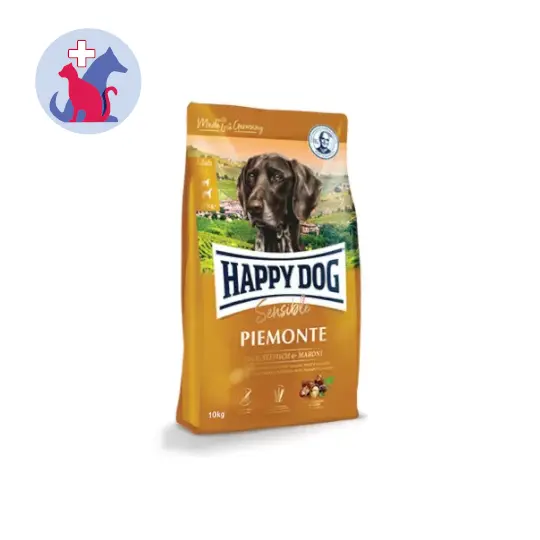 HAPPY DOG SUPREME SENSIBLE PIEMONTE GRAINFREE merupakan makanan anjing ras medium dan besar. Produk ini mengandung Chesnut Italia dengan daging bebek dan ikan laut berkualitas tinggi, serta tidak mengandung kentang. Produk ini juga bebas biji-bijian dan bebas gluten.