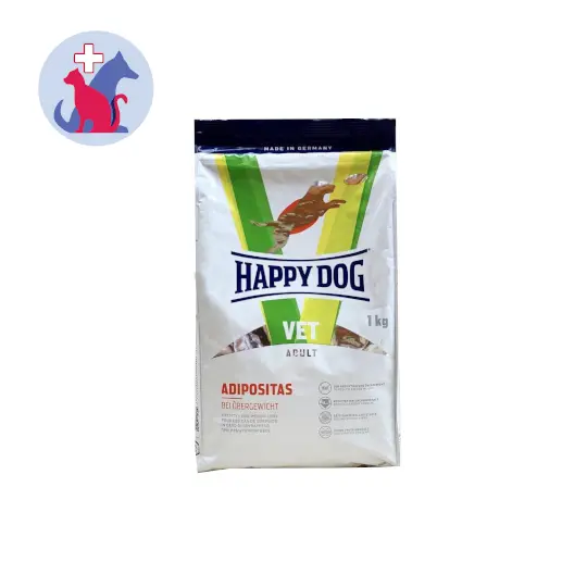 HAPPY DOG VET ADULT ADIPOSITAS merupakan makanan kering anjing untuk mengurangi berat badan berlebih pada anjing Anda. Varian ini mengandung kalori dan energi yang lebih rendah, kaya akan protein berkualitas tinggi dan serat. Produk ini juga mengandung L-carnitine untuk mengaktifkan metabolisme tubuh pada anjing Anda.