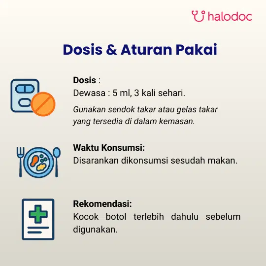 Anak (6 - 11 tahun) : sehari 1 - 2 kali 5 ml.