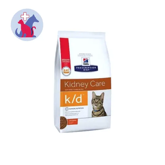 HILLS PRESCRIPTION DIET K/D KIDNEY CARE WITH CHICKEN FOR CATS merupakan makanan kering untuk kucing yang memiliki masalah terhadap fungsi ginjal.