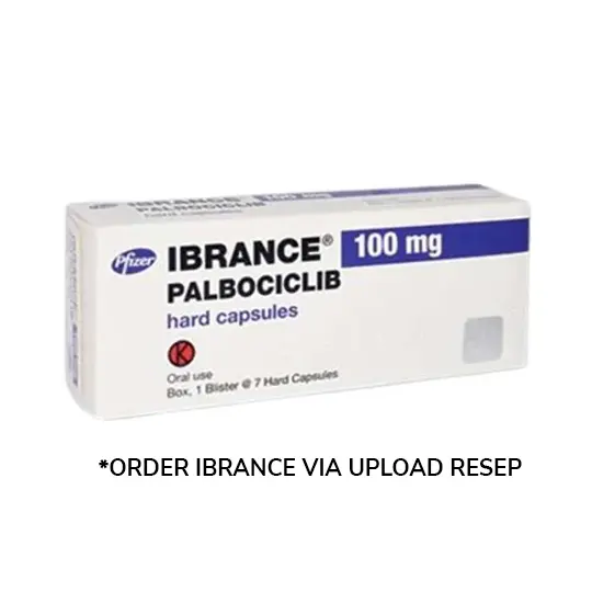 IBRANCE adalah obat kanker yang mengandung zat aktif Palbociclib. Palbociclib termasuk dalam golongan penghambat kinase (kinase inhibitor), yang secara spesifik bekerja sebagai penghambat Cyclin-Dependent Kinase 4 dan 6 (CDK4/6). Mekanisme kerja ini mengganggu siklus pembelahan sel, sehingga menghambat pertumbuhan dan penyebaran sel kanker. Ibrance digunakan sebagai bagian dari terapi kombinasi untuk jenis kanker payudara tertentu. Penggunaan obat ini HARUS DENGAN RESEP dan DI BAWAH PENGAWASAN KETAT DOKTER SPESIALIS ONKOLOGI. Ini adalah obat terapi target yang memerlukan pertimbangan klinis mendalam. Untuk melakukan pemesanan Ibrance silahkan menggunakan fitur UPLOAD RESEP di bagian bawah halaman toko kesehatan atau bisa menghubungi Halodoc Call Center di nomor +622150959900 atau melalui email ke help@halodoc.com.