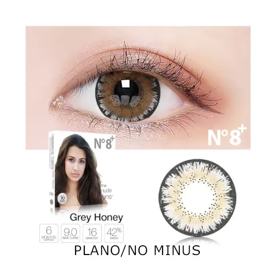 Ice No8+ Grey Honey 2 Color Softlens Plano/No Minus