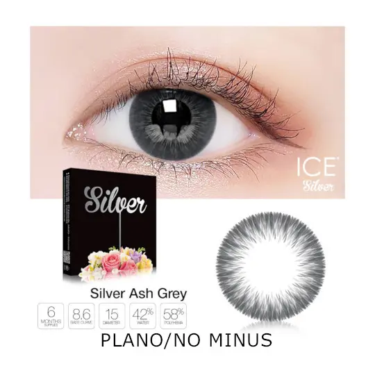 Ice Silver Ash Grey 2 Color Softlens Plano/No Minus