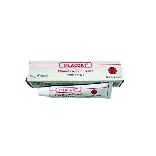 Iflacort mengandung mometason furoate yang bekerja dengan menurunkan pembengkakan, kemerahan, serta gatal. Iflacort merupakan obat krim yang berfungsi untuk mengatasi peradangan pada kulit yang responsif terhadap kortikosteroid, seperti eksim, psoriasis, kulit merah dan gatal. Dalam penggunaan obat ini harus SESUAI DENGAN PETUNJUK DOKTER. Pembelian obat ini memerlukan edukasi terkait penggunaan atau pengonsumsian obat yang tepat dan aman yang akan dikenakan biaya.
