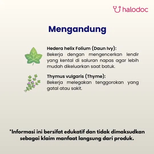 Ivy leaf Extract (Hedera helix folium ekstrak) 52.5 mg, Thyme seed Extract