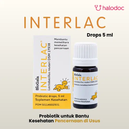 INTERLAC DROPS 5 ML adalah suplemen probiotik (bakteri baik) yang diformulasikan khusus untuk menjaga kesehatan saluran cerna. Produk ini mengandung Lactobacillus reuteri DSM 17938, salah satu strain probiotik untuk membantu menjaga keseimbangan mikroflora di dalam usus. Keseimbangan ini sangat penting untuk fungsi pencernaan yang optimal, membantu penyerapan nutrisi, serta meredakan keluhan perut seperti diare, kolik, dan sembelit. Dengan bentuk tetes (drops), Interlac sangat mudah diberikan untuk bayi baru lahir (neonatus), anak-anak, maupun orang dewasa.