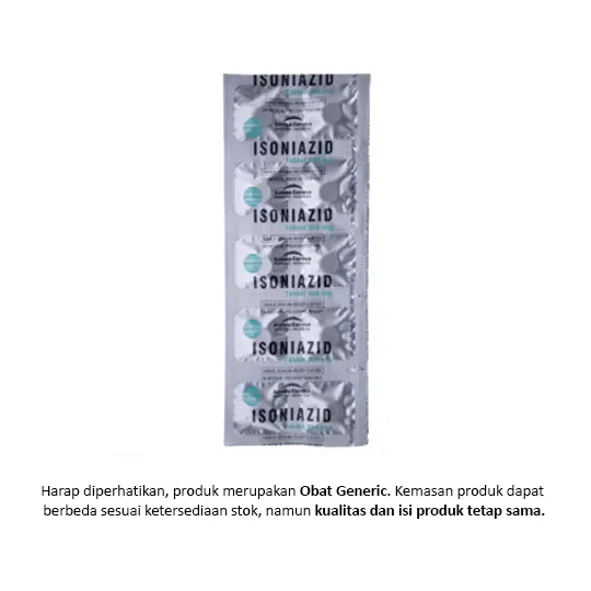 ISONIAZID merupakan obat golongan antibiotik yang digunakan untuk menangani gejala tuberkulosis paru ataupun ekstra paru, dimana biasanya regimen Isoniazid termasuk kedalam regimen penanganan Tuberkulosis (TBC) yang terdiri dari Rifampisin, Izoniazid, Pirazinamid, dan Ethambutol. Obat ini bekerja dengan dengan menghambat asam mikolat yang merupakan komponen penting dalam sel bakteri. Dalam penggunaan obat ini harus SESUAI DENGAN PETUNJUK DOKTER. Pembelian obat ini memerlukan edukasi terkait penggunaan atau pengonsumsian obat yang tepat dan aman yang akan dikenakan biaya.